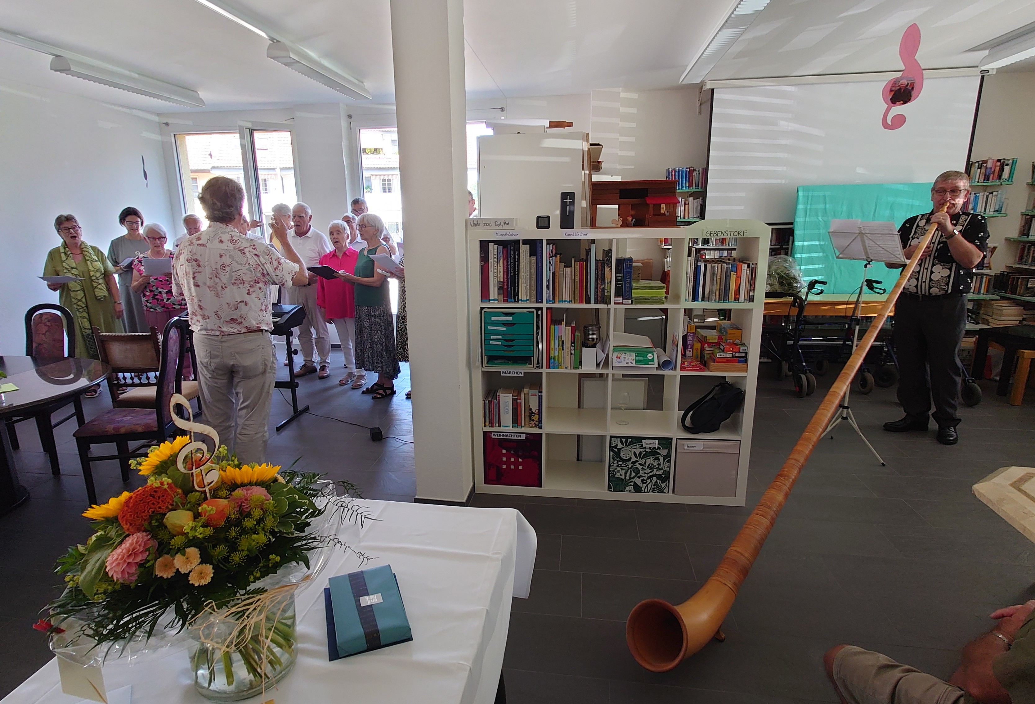 Dieses Zitat können wir vom kath. Kirchenchor Gebenstorf von Herzen bejahen. Das beste Beispiel und Vorbild ist unsere Bernadette Erni, die seit 59 Jahren mit Freude, Begeisterung und immer noch schöner Stimme in unserem Chor singt. Sie sagt: Das Mitsingen tut einfach gut, und die sozialen Kontakte bieten eine sehr geschätzte Abwechslung im Alltag. Am Sonntag, 10. August, durften wir im Lokal «mitenand läbe» ihren 100. Geburtstag feiern und diese Feier mit speziell für sie ausgesuchten Liedern umrahmen. Danke, Bernadette, für deine Treue. Für den kath. Kirchenchor
