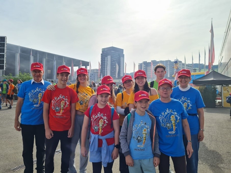 Minitreff in St. Gallen Am Sonntag, 7. September reisten acht Ministrantinnen und Ministranten aus dem Pastoralraum Wasserschloss, zusammen mit drei Begleitpersonen, nach St. Gallen, um am Treffen der Deutschschweizer Minis teilzunehmen. Schon die gemeinsame Reise war von Vorfreude und guter Stimmung geprägt. In St. Gallen erwartete uns nach dem Start im Messegelände der OLMA ein vielseitiges Angebot verschiedener Ateliers. Nach dem gemeinsamen Mittagessen aus dem Rucksack lockte wiederum der Atelier-Besuch. Auch ein Gottesdienst war zu zwei unterschiedlichen Zeiten auf dem Programm. Spiel, Spass und Gemeinschaft standen im Zentrum. Das Wetter hätte nicht besser sein können – strahlender Sonnenschein begleitete uns durch den ganzen Tag und sorgte für eine heitere Atmosphäre. Besonders bereichernd war es, so viele Minis aus der ganzen Deutschschweiz zu treffen. Neue Begegnungen, gemeinsame Spiele und das Erleben der grossen Mini-Gemeinschaft machten den Tag zu etwas ganz Besonderem. Der gemeinsame Abschluss in der Arena wurde von einer Lobpreis-Band mitgestaltet. So dankten wir Gott und allen, die Zeit und Engagement verschenkten, um nach 8 Jahren wieder ein Minifest zu ermöglichen. Der Ausflug nach St. Gallen bleibt uns als fröhlicher Tag voller Gemeinschaft, Freude und Dankbarkeit in Erinnerung. Ein herzliches Dankeschön an alle Teilnehmerinnen, Teilnehmer und Begleitpersonen, die diesen schönen Anlass möglich gemacht haben! Marianne Gloor / Beat Reichlin |